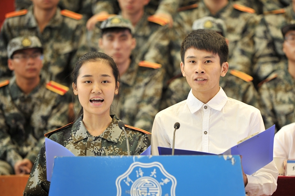 教师代表陈达教授和纪爱敏教授结合自身经历和执教经验,谈了大学与中学在学习内容和教学方式、以及对能力的培养和品格的塑造上的两个重要区别,并代表广大教师寄语新生在今后的学习、生活中,全力以赴、用心打拼,创造精彩的人生。新、老学生代表献辞,表示他们将珍惜机遇,以百倍的信心投入学习、努力成才,为学校建设、社会发展做贡献。