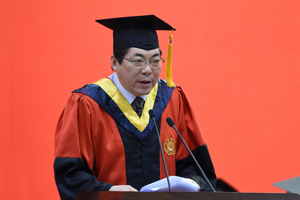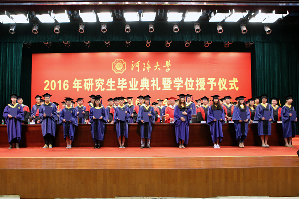 典礼上,徐辉校长发表了《不忘初心莫负韶华》的演讲,向顺利完成学业的各位同学表示热烈的祝贺,向养育、培养其成才的父母、老师致以最诚挚的感谢。徐校长以“创新”为主题,寄语广大毕业研究生要积极响应时代的召唤,保持初学者的心态,时刻对新知识充满渴望,不断学习实践,保持与社会同步、与发展同频,脚踏实地,担当有为,务实创新,成就事业。徐校长希望在万众创新、创新驱动发展的时代,广大研究生能够做到:一是保持初心,坚定信心,要有勇气打破思维藩篱,创造原始创新成果,在研究方向上善始善终,砥砺前行,在执着和坚守中成长成才;二是临事而惧,好谋而成,要培养“问题导向”的思维方式,尊重规律,追求真理,善于在前人研究的基础上发现问题,未雨绸缪,谋定而后动;三是穷理致知,反躬践实,要把人生追求和研究成果融入国家和民族发展的宏大实践中,成就个人的最高事业。徐校长殷切期望河海学子不忘母校嘱托,以兼济天下的胸怀,在这个伟大的创新时代下用美丽青春书写出自己的精彩人生。