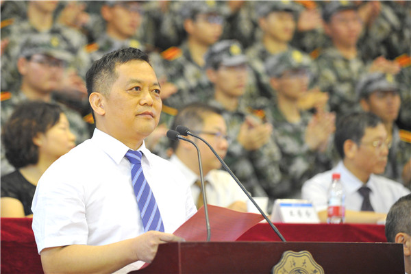 南京73211部队政委纪圣涛、某部政治部副主任郭宏图分别作了军训动员,他向即将参加军训的2016级新生表示热烈祝贺,寄语广大新生不仅要有“诗和远方”,也要有心系国家兴亡、民族复兴的家国情怀,同时希望所有承训官兵遵守纪律、尊重科学、尊重规律,高标准完成军训任务。