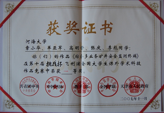 | 2007年11月,常州校区学生获得“挑战杯”一、二、三等奖各一项 |