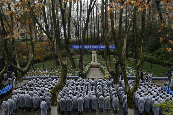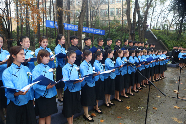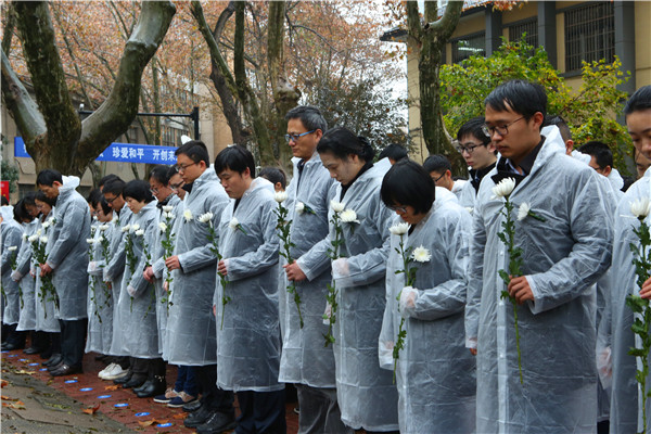 今年12月13日,是第三个南京大屠杀死难者“国家公祭日”。上午十时,开云电竞网师生在校内南京大屠杀死难者清凉山丛葬地“侵华日军南京大屠杀清凉山遇难同胞纪念碑”前,沉痛悼念和缅怀逝去的同胞。校长徐辉、校党委副书记郭继超、副校长陈星莺、校党委副书记、纪委书记孟新及师生代表参加了悼念活动。活动由郭继超副书记主持。