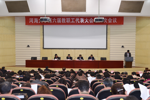 校党委唐洪武书记在讲话中对这次大会给予了充分肯定,他指出,这次会议是学校全力推进“双一流”建设,全面贯彻落实全国高校思政工作会议精神之际召开的,会议达到了统一思想、振奋精神、凝聚力量的目的。唐书记要求:要全面深化改革,激发“双一流”建设强大动力;要推进全面从严治党,强化师德师风,营造风清气正的育人环境;要进一步发挥教代会作用,加快完善现代大学制度等。他指出,办好中国特色社会主义大学,坚持立德树人,培养社会主义事业的合格建设者和可靠接班人,是新时期党和国家赋予我们庄严的神圣使命,希望各位代表把本次会议精神落实到实际工作中,同时充分做好全体教职工的思想引导工作,团结和动员广大教职工,振奋精神,鼓起士气,真抓实干兴河海,众志成城创未来,以优异成绩迎接党的十九大的胜利召开!