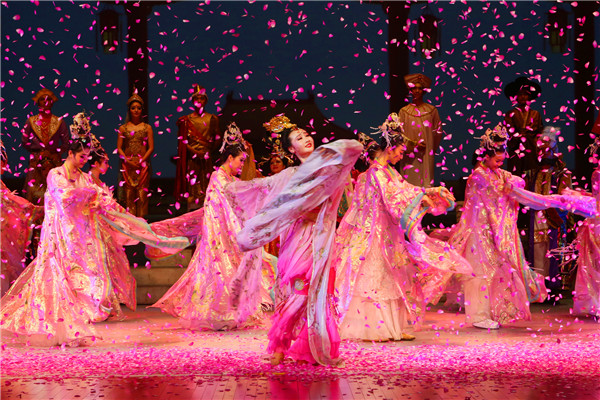 《丝路花雨》取材于敦煌莫高窟壁画艺术,以和平、友谊为主题,讲述了敦煌画工神笔张和女儿英娘与波斯商人患难与共、生死相交的感人故事。该剧博采各地民间歌舞之长,以别具一格的艺术风格,形象地再现了敦煌文化的博大精深和古丝绸之路的辉煌景象。