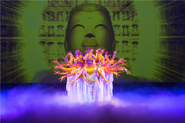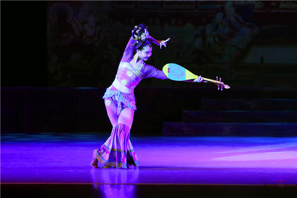 在美轮美奂的敦煌壁画的背景中,最具中华民族风韵的“千手观音”、婀娜多姿的“波斯舞”、敦煌壁画里“飞天”、风情万种的“反弹琵琶”等经典节目先后亮相,各种民族元素通过舞蹈的形式穿插在跌宕起伏的故事情节里,引领观众重走了繁荣兴盛的丝绸之路,给师生们带来了多元共融的文化体验,赢得全场的热烈掌声。
