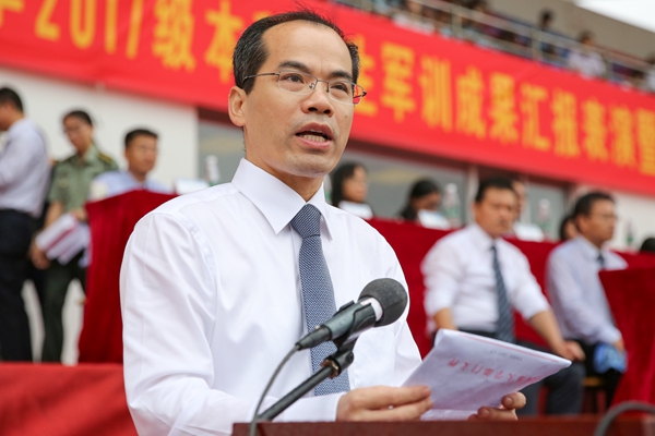 副校长、2017级学生军训旅旅长董增川发表讲话
