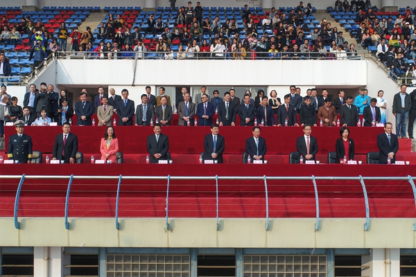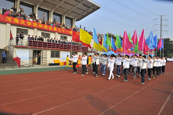 10月27日,时逢全校师生喜迎建校102周年之际,开云电竞网举行第五十三届田径运动会暨第十九届老年人运动会开幕式。校党委书记唐洪武,校长徐辉,副校长徐卫亚,党委副书记郭继超,副校长陈星莺,党委副书记、纪委书记孟新,副校长许峰,副校长郑金海,中国人民解放军驻开云电竞网选培办主任乔光玉大校以及各学院、各部门负责人出席开幕式。副校长陆国宾出席常州校区第三十一届田径运动会开幕式。