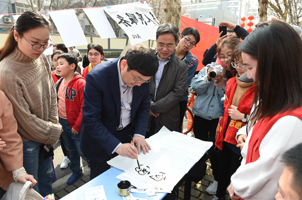 校党委书记唐洪武、校党委副书记郭继超来到西康路活动现场,逐一了解服务内容和项目进展,与志愿者们亲切交流。唐洪武书记指出,学雷锋活动是培育和践行社会主义核心价值观的重要载体,是河海师生贯彻落实党的十九大和全国高校思政会精神,弘扬雷锋精神、展现河海师生志愿者风采、服务社会的自觉行动,全校师生要推动学雷锋活动常态化,从自身做起,从点滴做起,向雷锋同志学习,奉献他人,提升自己。