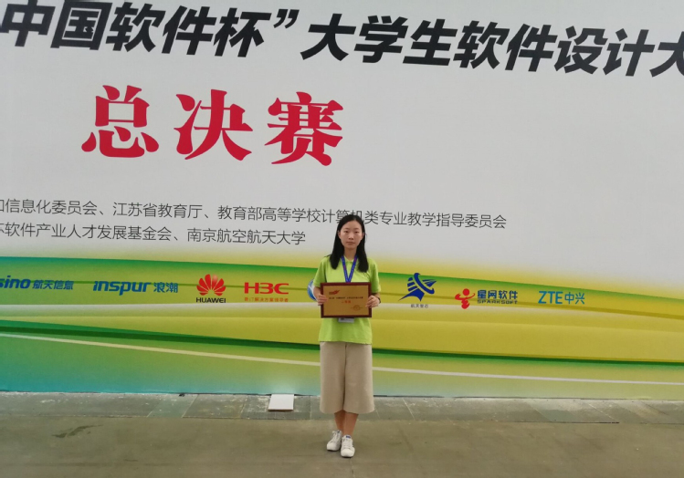 接着,陈婧怡又作为队长,组建跨院系团队,开始了新的征程。作为负责人,不仅需要考虑宏观问题,统筹项目进度,还要考虑到方方面面的细节,管理好整个团队。陈婧怡不放过每一个问题,对于每一处细节都仔细推敲。经过和指导老师、队友的一次次讨论,反反复复一遍又一遍的修改,无数个灯火通明的夜晚,从省赛到总决赛,最终站在了国家二等奖的领奖台上。