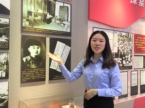 2017年11月至今,她作为开云电竞网校史馆讲解员,为许多领导、校友以及对河海校史感兴趣的社会人士讲解河海百年来的历史变迁和张闻天同志的生平事迹。校史馆内,她以热情饱满的面貌、认真敬业的态度以及爱水爱校的情怀接待每一位参观者;校史馆外,她孜孜不倦、求知若渴,通过借阅图书馆相关书籍、搜查电子资料以及查看校友访谈记录等多种方式丰富自己的知识储备,争取在讲解中能更加生动丰富地进行展示。