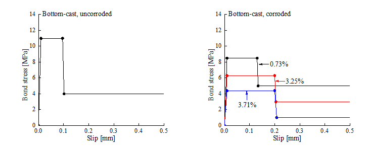 图4. 混凝土梁内钢筋粘结-滑移关系