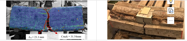 俞小彤博士与Karin Lundgren教授团队依托瑞典一座服役80年的RC桥梁(Gullspång Bridge),现场选取桥梁的边梁进行三点弯曲等试验,分析荷载-挠度曲线、钢筋锈蚀与屈服形态。研究发现自然腐蚀RC梁极限挠度由端部粘结性能决定,钢筋屈服具有不对称性(图1),并提出了不对称因子(a=Δl/0.5l)量化不对称程度。