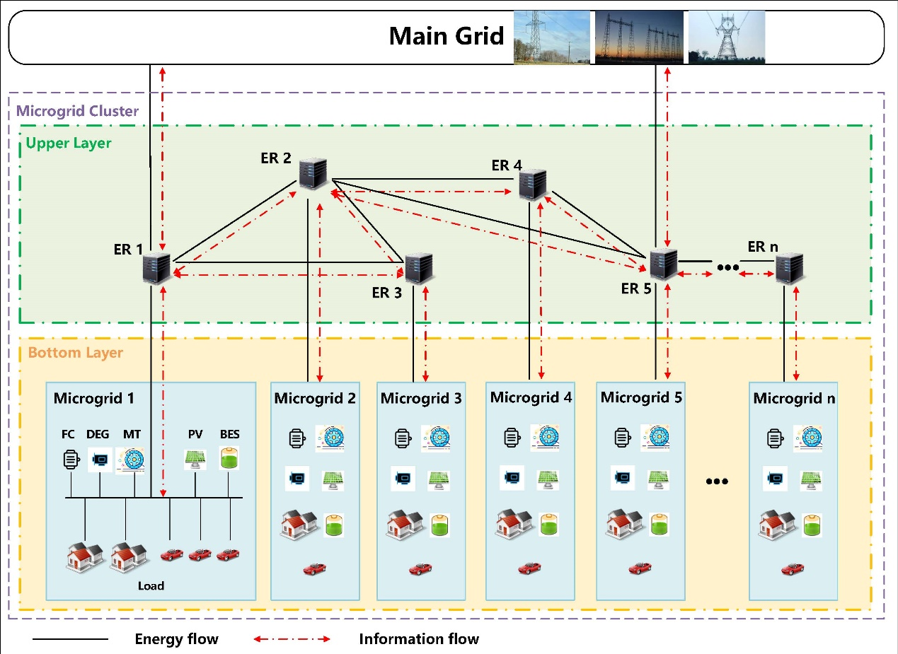 在“碳达峰、碳中和”目标指引下,我国电网正在向着智能化、绿色化发展,传统“自顶向下”的电网发输配变用模式正在面临一系列挑战。一方面,可再生能源的大量渗透导致电网供给侧灵活性下降明显,给电网的安全稳定运行带来威胁;另一方面,先进信息通信技术的发展使大量分布式需求侧资源能够参与电网调节,但其海量、分布式的特点给供需互动调节提出了新的要求。“自底向上”构建新一代能源体系是现实意义下能源可持续发展切实可行的道路。借鉴互联网机制,同传统电网“自顶向下”的树状结构相比,用能互联网的形成是能量自治单元之间的对等互联。如何基于数据驱动的方法,从系统控制的角度精准实现“自底向上”实时能量管控模式,在一定区域内承担分布式可再生能源的灵活接入、动态负荷的局部消纳、与用户互动的需求侧响应等功能,仍存在诸多科学难题和技术瓶颈。