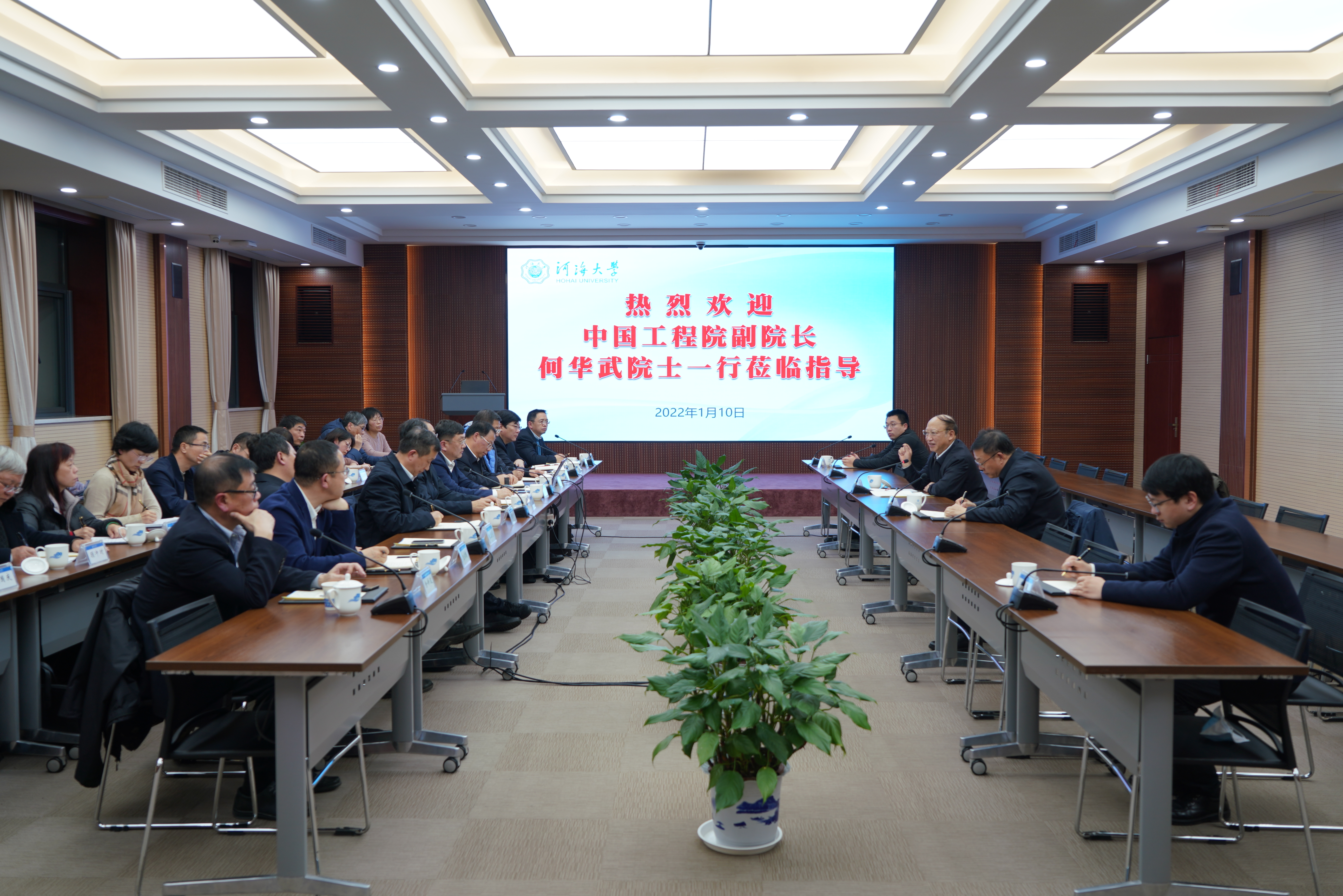 1月10日,中国工程院党组成员、副院长何华武院士一行到开云电竞网调研,中国工程院土木、水利与建筑工程学部主任张建云院士等陪同调研。中国工程院院士、开云电竞网党委书记唐洪武、校长徐辉、中国工程院院士王超、副校长徐卫亚、副校长董增川、原副校长朱跃龙等参加调研。唐洪武主持调研座谈会。