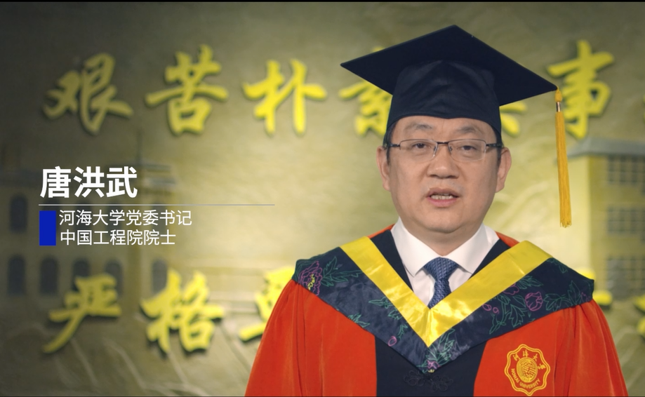 唐洪武在祝福视频中寄语毕业生,党和国家高度重视青年人才,水利事业迎来了空前发展,国家“江河战略”加快推进,河海毕业生们也站在了最好的舞台。时代正好,青春正盛,奋斗正当。他希望河海青年们永葆一颗真诚、热爱、奋进的初心,既不迷恋过去、也不迷茫未来,追光远征、刚健有为,摩拳擦掌、追逐梦想,求得真学问、练就真本领,矢志追求更有高度、更有境界、更有品位的人生,努力为家国立功、为时代立业、为人民立命。