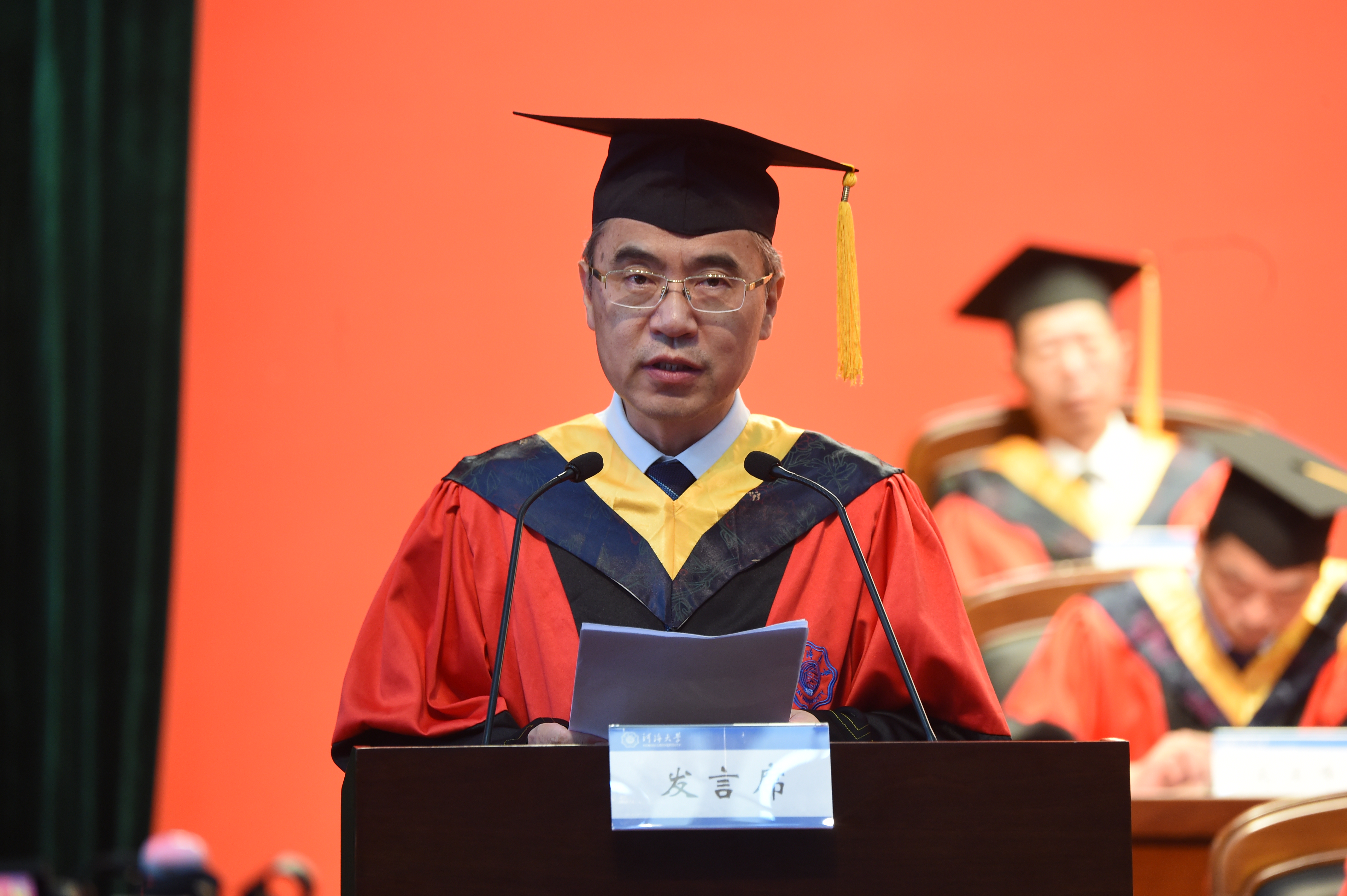 徐辉对广大毕业生提出三点希望:一是坚定信念,笃行而致远。理想信念是人生的灯塔,拥有坚定的理想信念才能有正确的航行方向。百余年来,河海先辈们坚定理想信念,坚守初心使命,用行动践行着“河清海晏民安康”的责任担当。希望同学们坚定共产主义远大理想和中国特色社会主义信念,用初心砥砺信仰、用使命坚定信念、用实干增强信心,不断增强做中国人的志气、骨气、底气,争做担当民族复兴大任的时代新人。二是善于学习,格物而致知。学习是文明传承之途、人生成长之梯、国家兴盛之要。要以“以史为鉴,可以知兴替”的历史自觉向历史学习,要以“上善若水”的思想自觉向水学习,要以“三人行,必有我师”的行动自觉向他人学习,时刻保持虚心学习的空杯心态,“择其善者而从之,其不善者而改之”,努力成为值得他人学习的榜样楷模。三是坚持实践,敢为而争先。“耳闻之不如目见之,目见之不如足践之”。河海师生参与建设的三峡工程、黄河小浪底工程、南水北调工程、港珠澳大桥等国之重器,都是在充分实践的基础上完成的重大工程。同学们要坚持实事求是、精益求精,在丰富的实践中增长知识才干、练就过硬本领,在知行合一中实现思有方、谋有据、做有成。徐辉校长表示,母校永远是每一位毕业生的坚强后盾,衷心祝愿大家前程似锦、一生幸福。