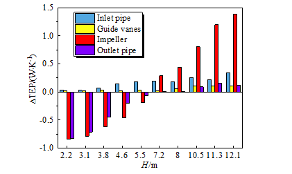 图1 考虑叶顶间隙的水泵反向发电在不同工况下不同过流部件的能量损失对比