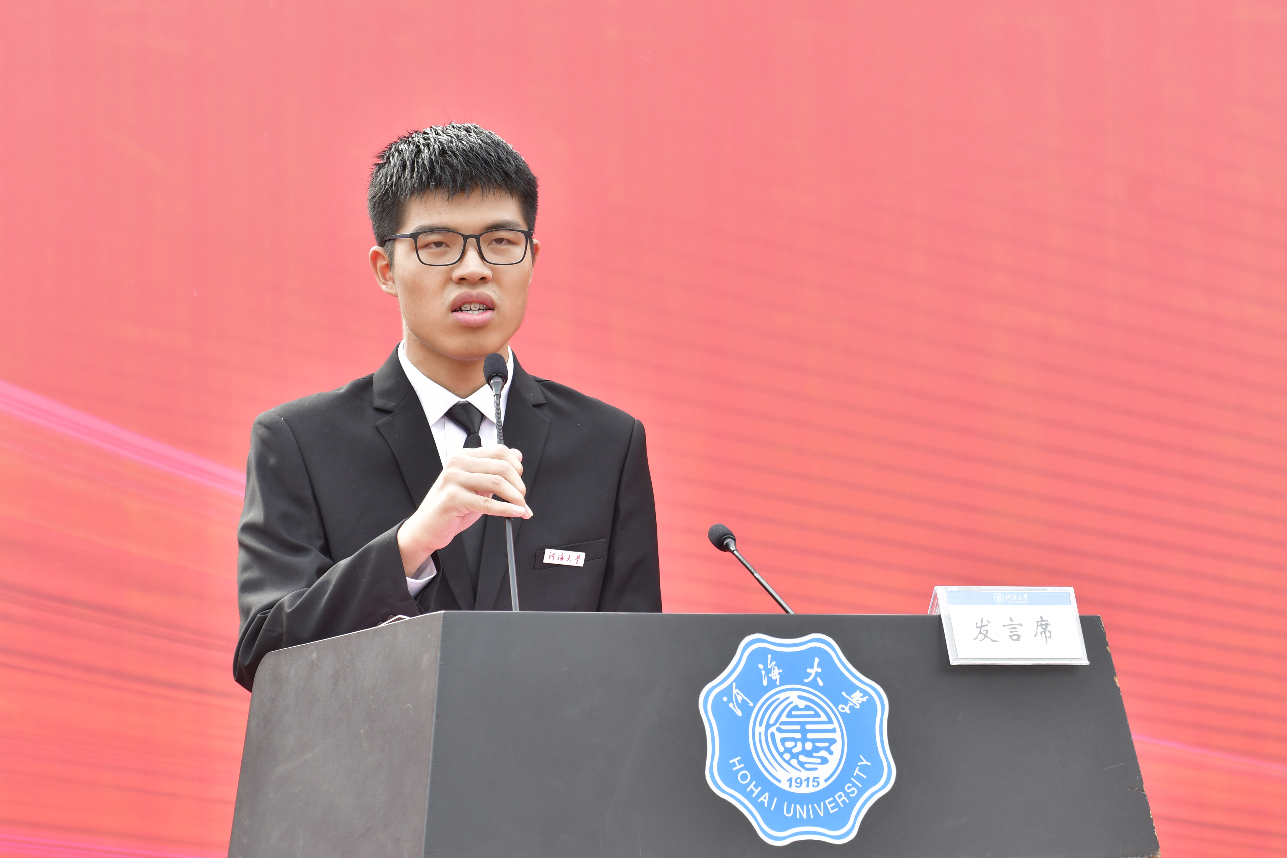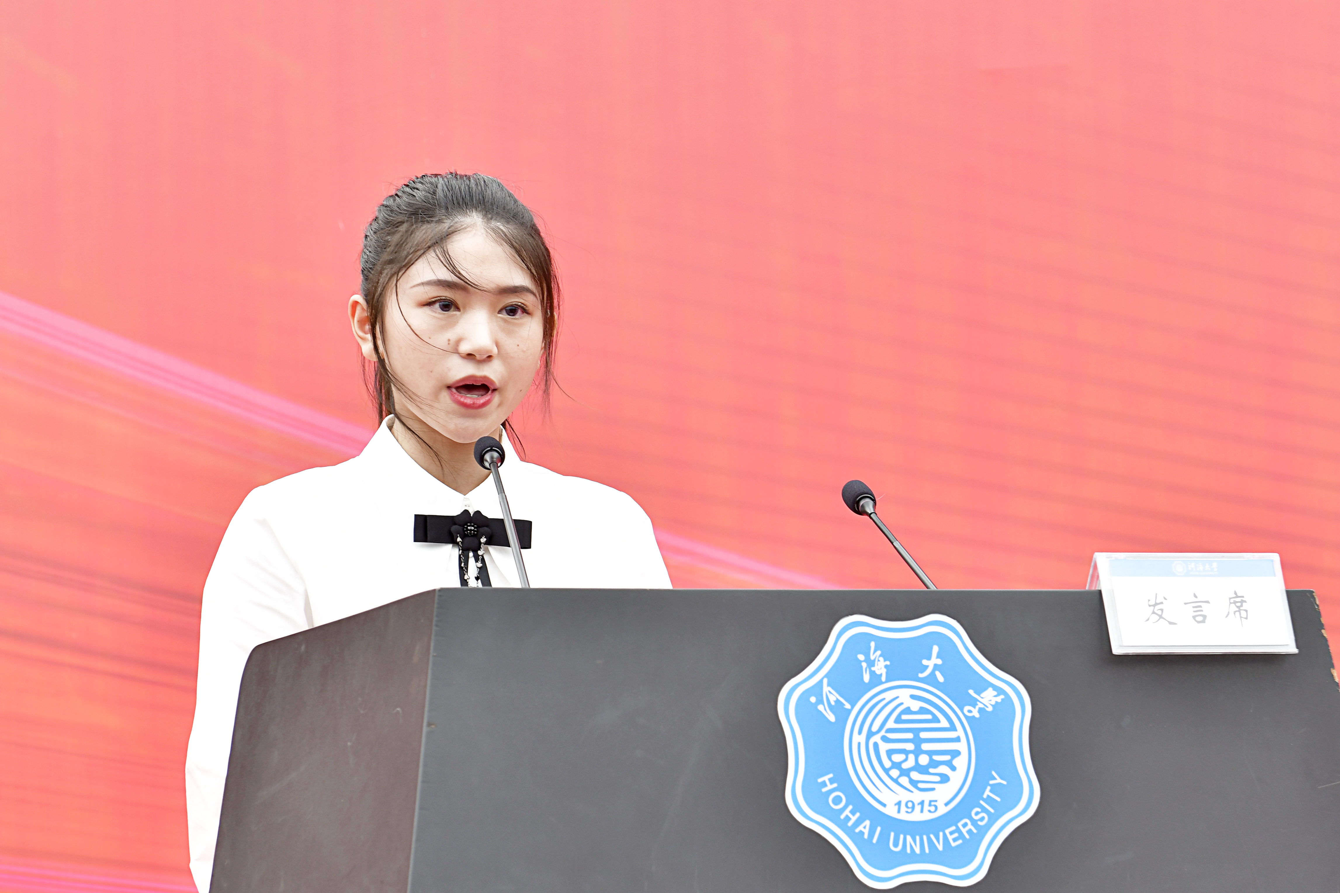 校学生会王艺蓉同学和校研究生会黄啸宇同学作为在校生代表发言,分享了自己的学习生活感悟,鼓励新同学们胸怀理想、砥砺奋进,传承河海荣光,创造河海新的辉煌。水利水电学院2022级研究生袁海钰同学、信息学部物联网工程学院2022级研究生邹杨同学、大禹学院2022级本科生王子为同学和机电工程学院2022级本科生刘鸣鹤同学作为新生代表先后发言,表示将始终谨记校训精神,不负韶华,不负时代,努力成长为敢为人先、追求卓越的新时代青年。