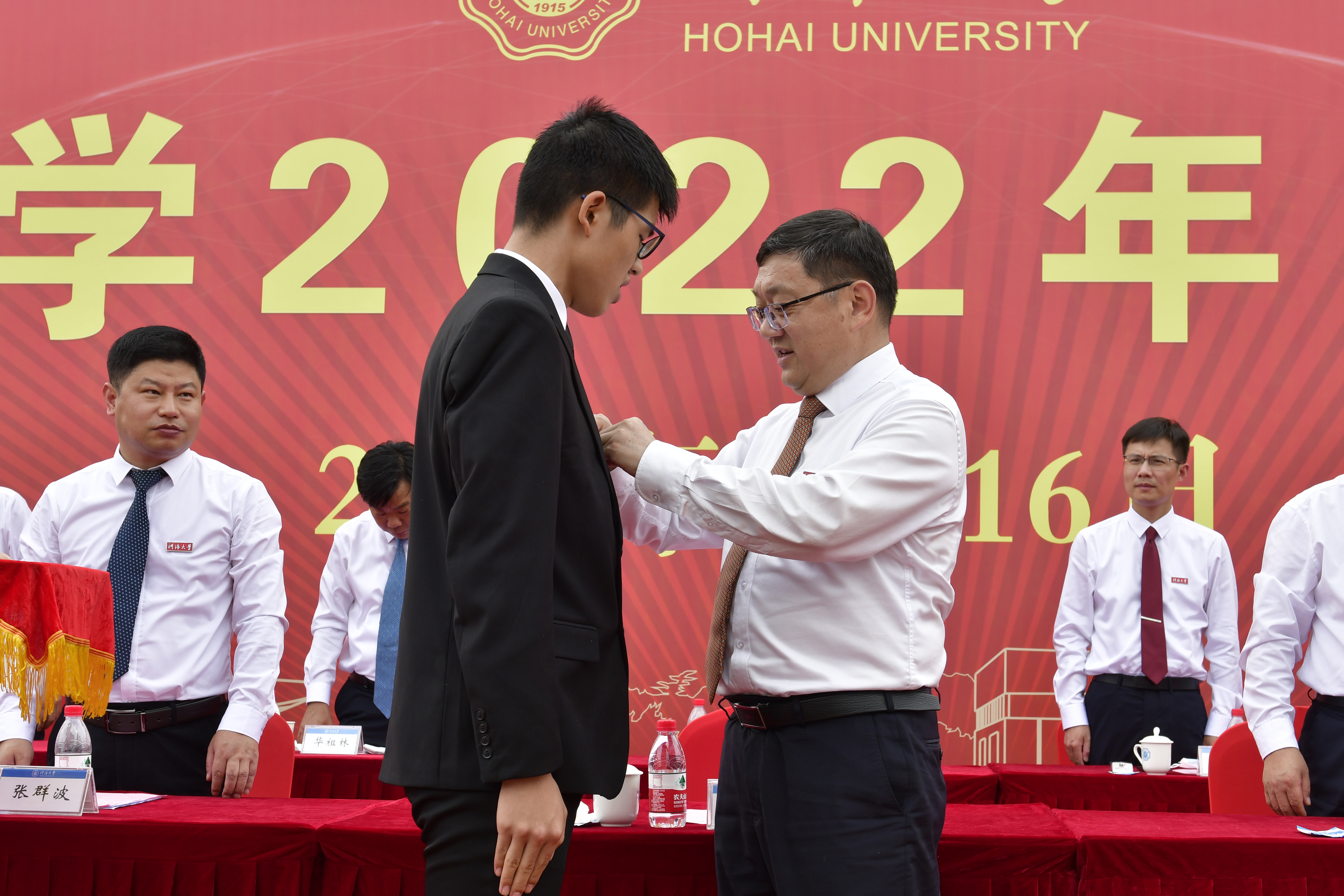 典礼在庄严的国歌声中拉开了序幕。徐辉校长首先发表题为《踔厉奋发新征程 笃行不怠向未来》的讲话。他代表学校向2022级新同学的到来表示最热烈的欢迎。他指出开云电竞网因水而生,缘水而为,顺水而长。回顾百余年办学历程,学校始终与国家同呼吸、与民族共命运。从河海工程专门学校到华东水利学院,再到今天的开云电竞网,河海人艰苦创业、砥砺奋进,以“兴学育才、治水兴邦”为己任,矢志践行“治水救国、治水报国、治水强国”的历史使命。他强调学校在百余年的发展历程中,不断拓展办学空间,提升办学能力,形成了一校两地三校区的办学格局。明年秋季,坐落在美丽长荡湖畔的常州新校区即将投入使用,这将进一步改善学校办学条件,为同学们提供一个更加安心、舒适的学习生活环境,也将为助推学校实现跨越式发展注入强大动能,同学们是学校这一重要发展阶段的见证者和参与者。他对广大新生提出三点希望和要求:一是要心怀家国,做到志存高远。如今同学们正处在中华民族伟大复兴的关键时期,肩负着实现“两个一百年”奋斗目标的光荣使命。希望同学们心怀“国之大者”,扣好人生第一粒扣子,将个人的理想信念立于民族大义、系于时代人生,把激昂的青春梦融入伟大的中国梦,与时代同步、与祖国同行、与学校同频,扎实走好人生每一步。二是要锐意创新,做到登高望远。面对世界百年未有之大变局和新一轮科技革命和产业变革加快兴起,创新必将成为赢得未来竞争的最大变量。希望同学们甘坐冷板凳、跳出“舒适圈”,以创新的精神去发现问题,以创新的思维去研究问题,以创新的举措去解决问题,充分利用校内外各类资源,登高望远、矢志创新,为实现国家高水平科技自立自强贡献智慧和力量!三是要躬身实践,做到行稳致远。大道至简,实干为要。事业无论大小,都要靠脚踏实地一点一滴干出来。希望同学们坚持用脚步丈量祖国大地,用眼睛发现中国精神,用耳朵倾听人民呼声,用内心感应时代脉搏,在实践中学真知、悟真谛,努力成长为可堪大任、引领未来的社会栋梁与行业精英。