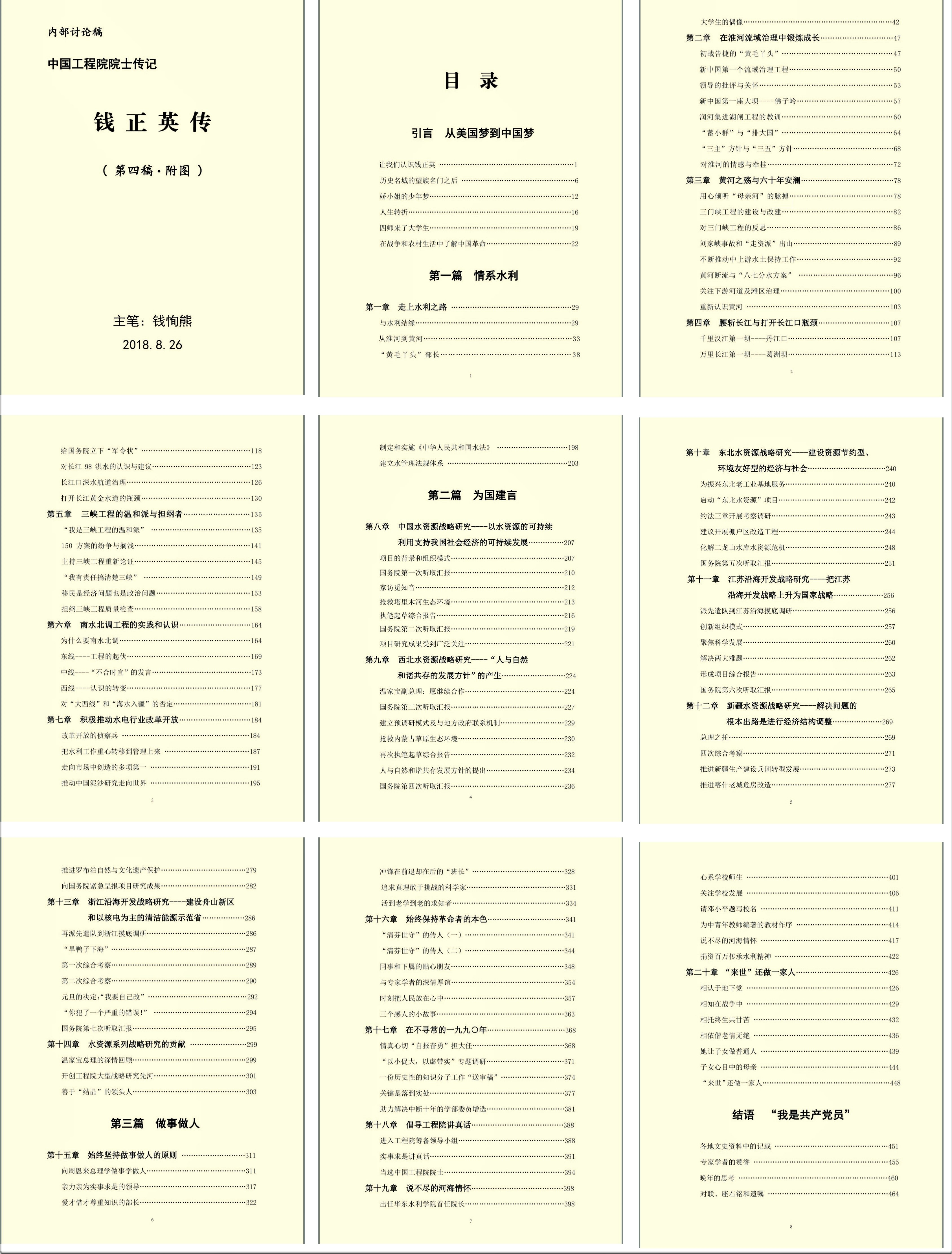 在老院长传记的写作过程中,始终得到学校领导及有关部门和教师的大力支持。经过写作工作组全体成员的共同努力,2018年8月26日,我拿出了传记第四稿。工程院在与出版社联系时得知,有关部门对国家领导人出版传纪作出了新的规定。