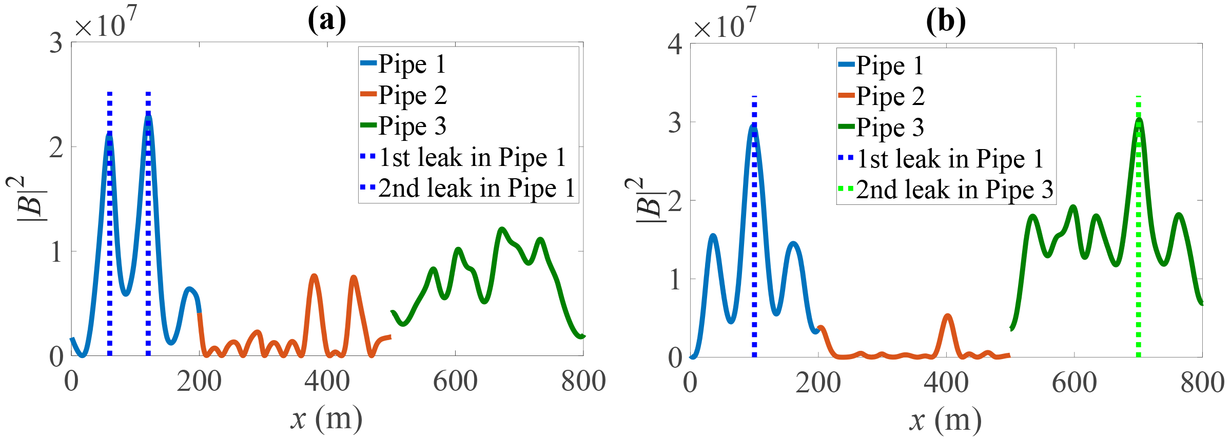 湍流及用户取水易产生背景噪声与不确定性,噪声声波与泄漏反射波的特征高度相似,且难以被传统信号处理的滤波方法消除,严重干扰测量的反射波形,引发病态反演问题。研究团队从理论上证伪了经典Tikhonov正则化方法,并建立了噪声在系统中的传递特性模型;基于此,提出了低信噪比下不适定频率信息的消除策略,实现了背景噪声干扰下管网泄漏的精准定位(Che et al.,2022b)。