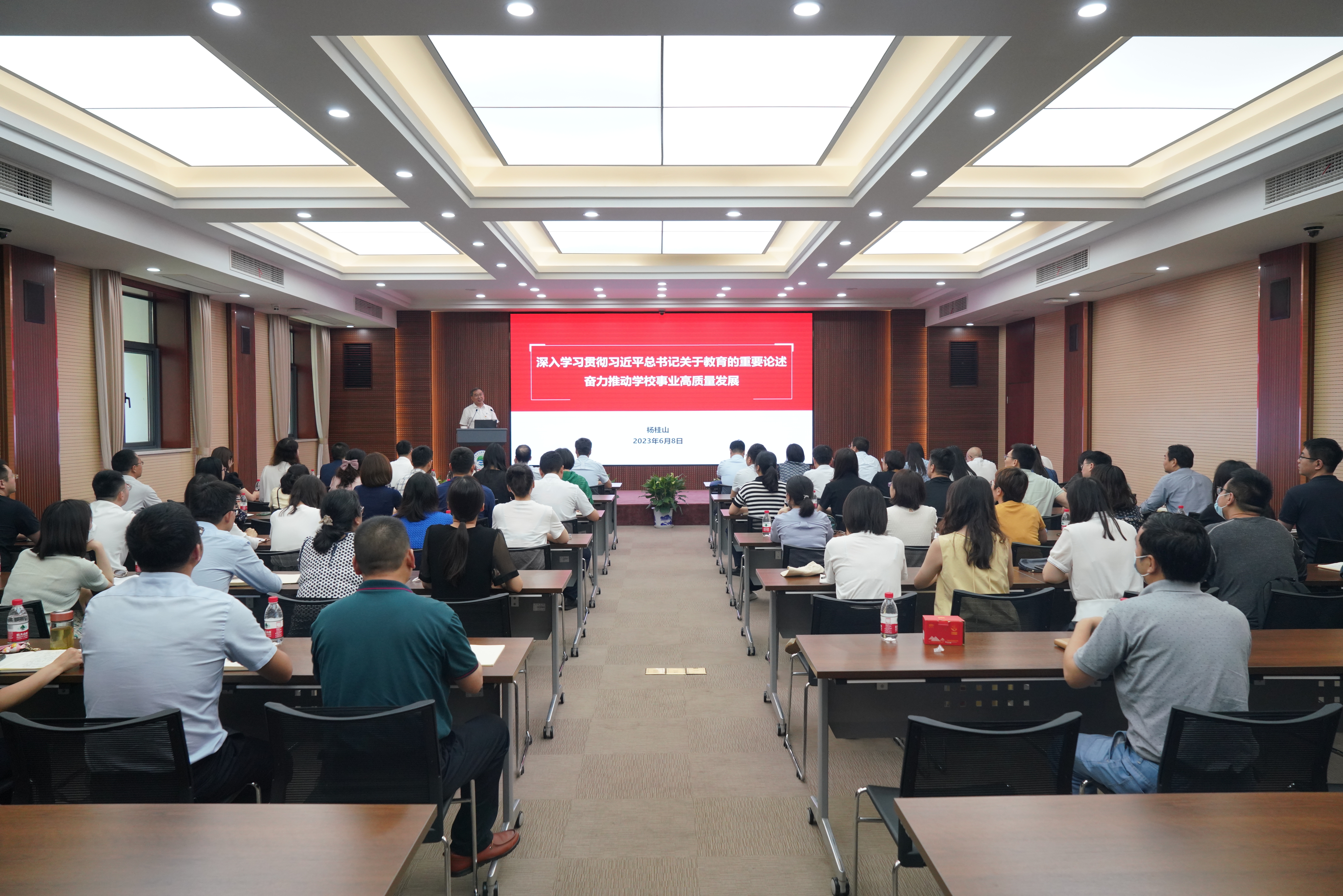 6月8日,校长、党委副书记杨桂山围绕“深入学习贯彻习近平总书记关于教育的重要论述 奋力推动学校事业高质量发展”主题,为部分职能部门党员代表讲授主题教育专题党课。