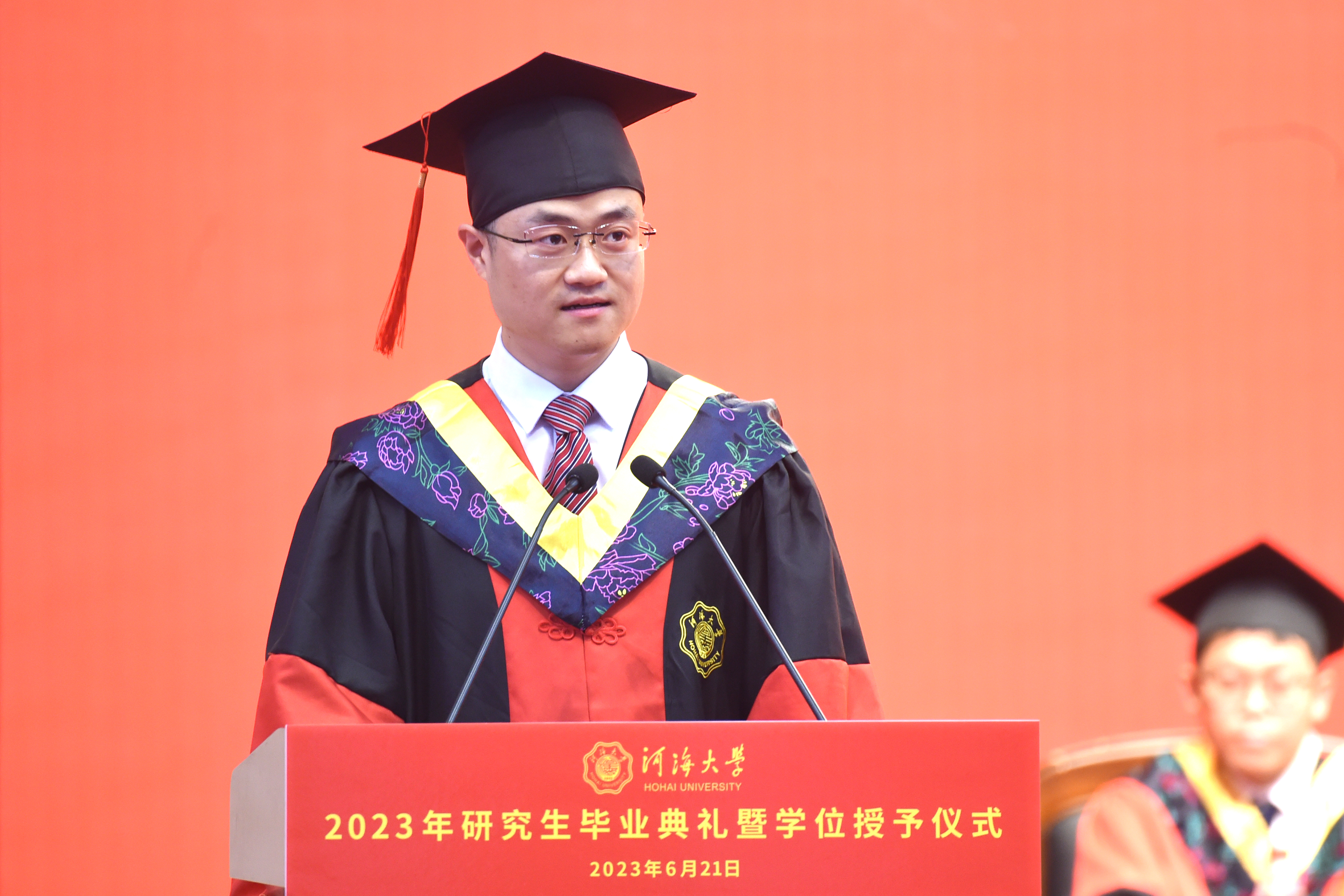 他对全体毕业研究生提出了三点希望:厚植爱国情怀,在坚定理想信念中把准青春航向。要传承河海红色基因,弘扬治水兴邦的价值追求,把自己的人生同祖国的前途、民族的命运紧密相连,以理想之光照亮前行之路,将爱国心、报国情、强国志铭刻在工作岗位上、挥洒在青春汗水中。勇担时代重任,在矢志永攀高峰中彰显青春力量。要时刻牢记和践行“艰苦朴素、实事求是、严格要求、勇于探索”的校训精神,走出“舒适区”、勇闯“无人区”,在原始创新、集成创新、融合创新、应用创新中勇攀高峰,成为引领和推动行业发展的中坚力量。要坚持知行合一,在锤炼过硬本领中谱写青春华章。要坚持学无止境,深入学思践悟,做到知行合一,在终身学习中提高思辨能力,锻造硬核本领,以永不懈怠的精神状态和一往无前的奋斗姿态,在时代浪潮中,赢得主动、赢得优势、赢得未来。