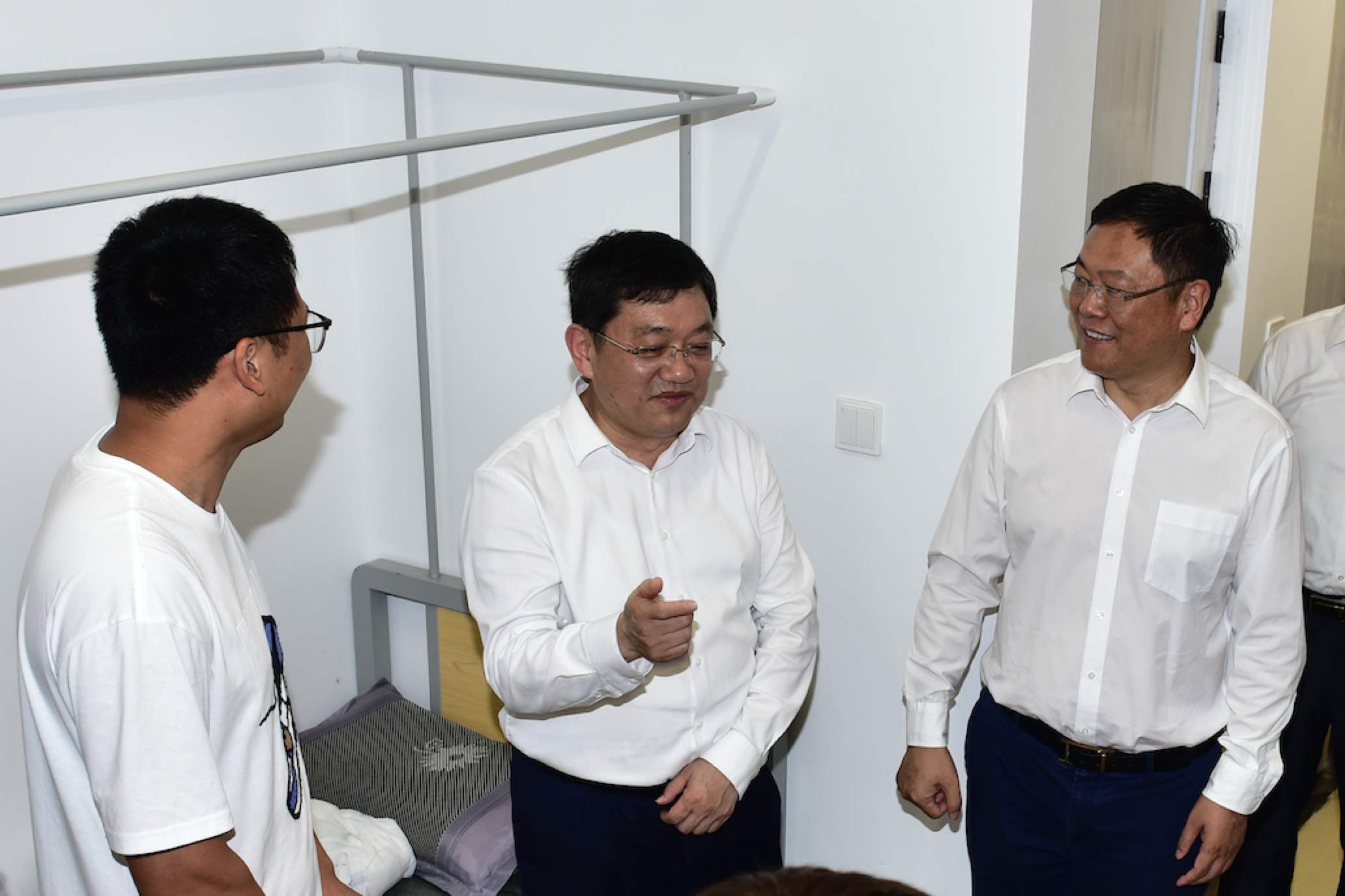 上午10:00,校地双方领导共同等候在校区南大门,随着满载学生的一辆辆大巴车缓缓驶入,领导们向入驻的2022级同学挥手致意,热烈欢迎他们成为新校区的主人。随后,校地领导一起为入驻学生送上贴心大礼包,含有金坛生活消费指南、“畅游金坛”尊享年卡、吾悦广场消费优惠券、免费乘坐公交车指南、扇子、金坛折页、文旅节目清单、清凉包等丰富物品,期待“‘河’你一起创造‘金’彩”。欢迎仪式结束后,校地领导共同来到师生教学及生活场所,走访了解校园情况,看望入驻师生,进行亲切交流,了解大家对于常州新校区的期待和对未来学习生活的展望,听取他们的意见建议。