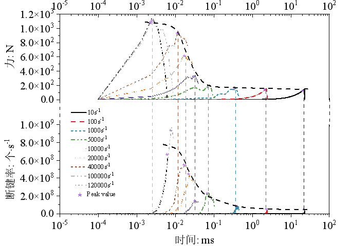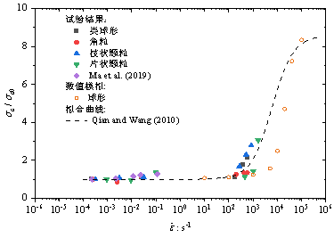 图1 砂土颗粒破碎强度的应变率变化规律及粘性滞后效应