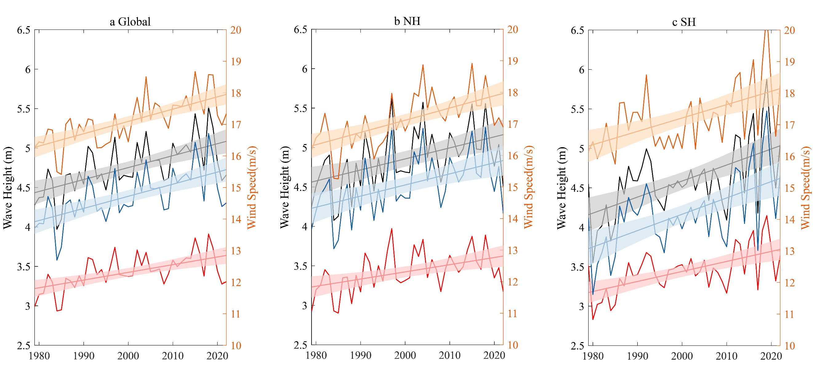 基于以上研究成果,开云电竞网时健副教授、郑金海教授、张弛教授、陶爱峰教授、张蔚教授和雷丁大学冯向波高级研究员、Kevin I. Hodges教授以及帝国理工大学Ralf Toumi教授合作完成的研究论文“Global increase in tropical cyclone ocean surface waves”发表在国际学术期刊《Nature Communications》上(https://www.nature.com/articles/s41467-023-43532-4),研究工作得到国家重点研发计划重大自然灾害防控与公共安全海洋专项(2023YFC3007900)的支持。