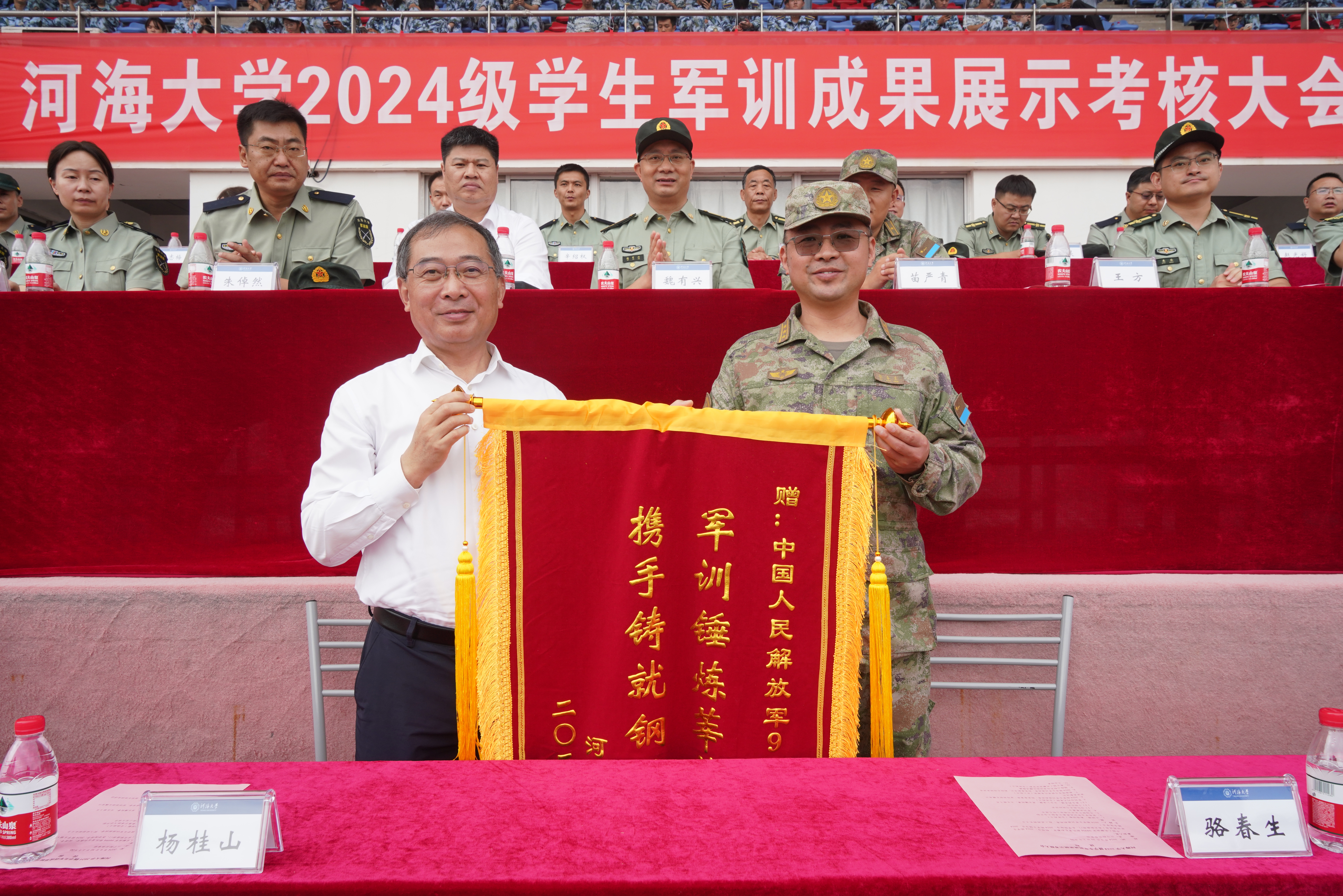 9月30日上午,我校在江宁校区体育场举行2024级学生军训成果展示考核大会。校长杨桂山,校党委副书记、纪委书记孟新,副校长郑金海,2024级学生军训旅政委、校党委副书记、副校长陆国宾,副校长陈达和承训部队领导出席大会。