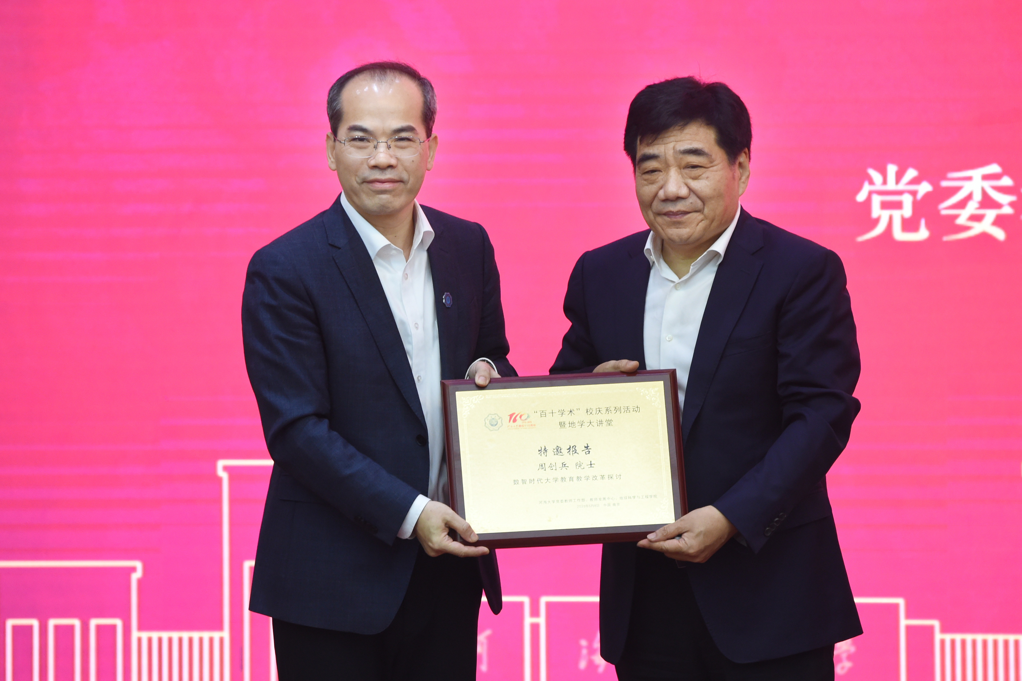 5月8日,“百十学术”校庆系列活动暨地学大讲堂在西康路校区举行。中国工程院院士、南昌大学流域碳中和教育部工程研究中心主任、地质工程专业1980级校友周创兵院士受邀作题为《数智时代大学教育教学改革探讨》的专题报告。校长郑金海出席报告会。