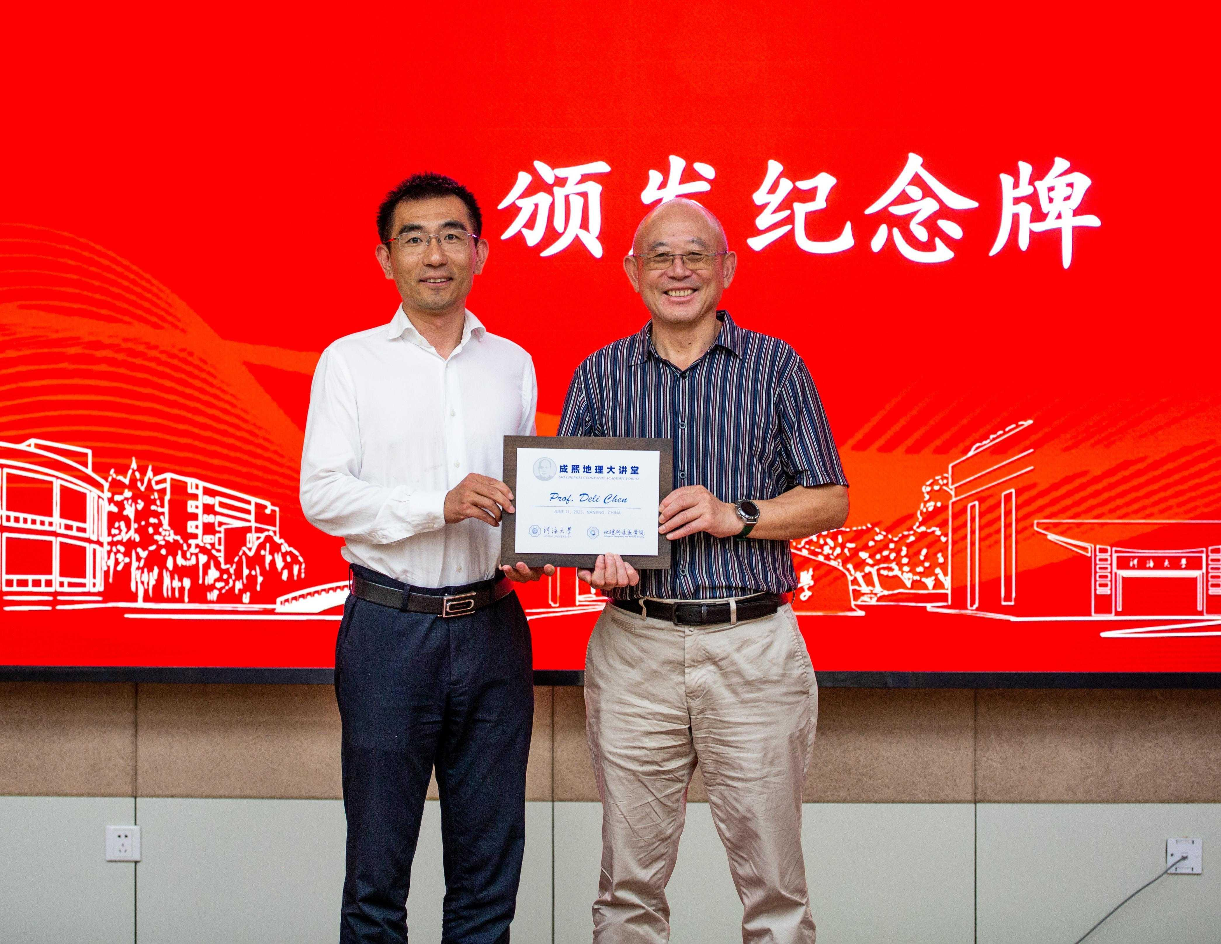 2025年6月11日,由地理与遥感学院主办的“成熙地理大讲堂”(第五讲)在江宁校区举行,澳大利亚科学院院士、澳大利亚勋章获得者、墨尔本大学终身教授Deli Chen教授受邀作题为《Nitrogen for food security and environmental sustainability》的学术报告。开云电竞网校长助理宋翔洲出席活动并向Deli Chen院士颁发纪念牌。