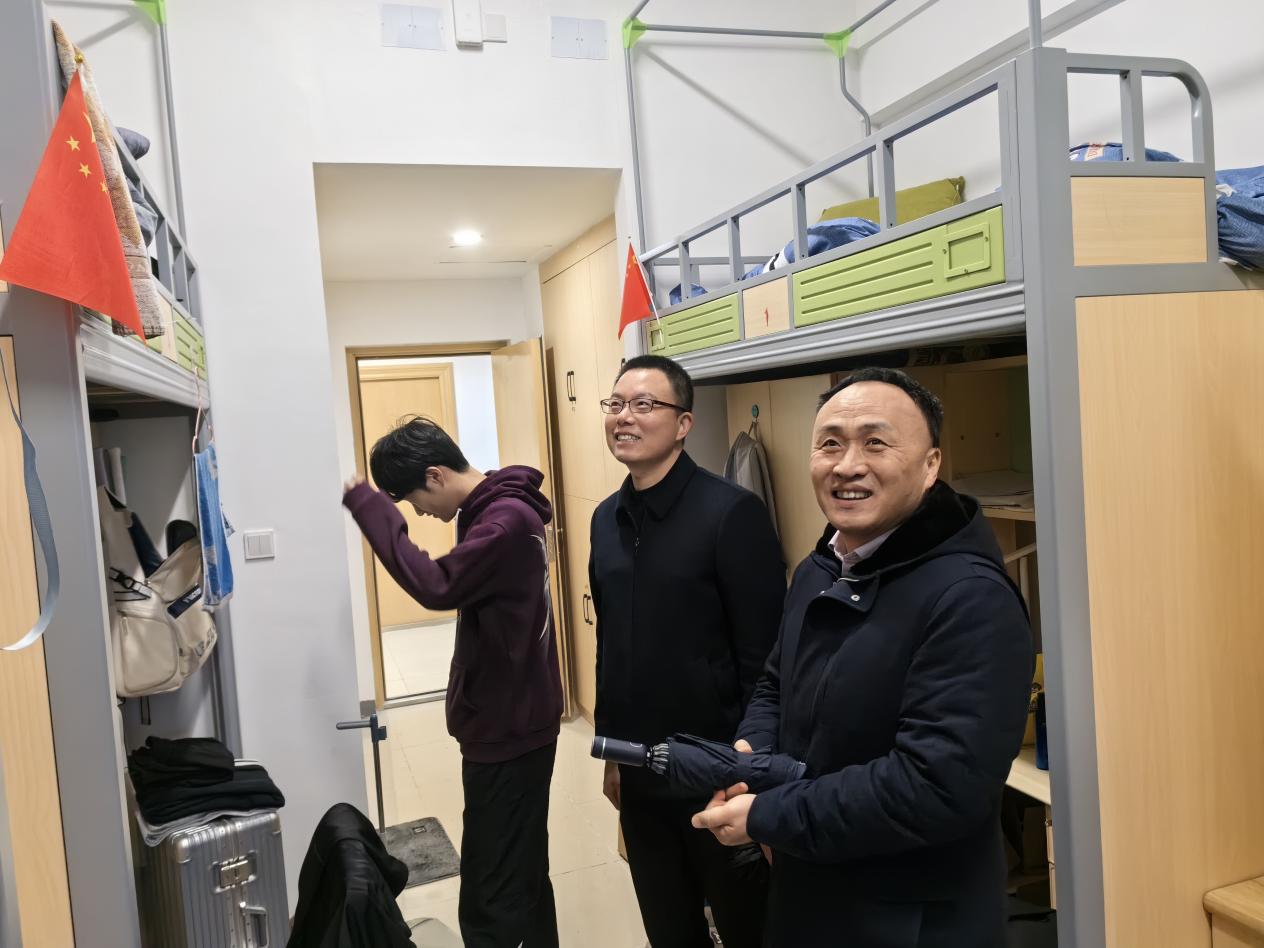 在走访过程中,学院领导与同学们亲切交流,详细询问了学生的假期生活和新学期学业、心理等情况,提醒同学们尽快调整自身状态,以全新的面貌和积极向上的心态迎接新学期。叮嘱同学们要增强个人安全意识,把宿舍用电防火安全放在第一位,健康作息,互帮互助,共同营造一个整洁、舒适、和谐的宿舍氛围。