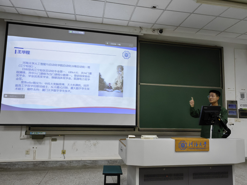 自动化专业的王华程同学成功保研至厦门大学。他从专业学习,心态调整等方面进行分享了自己独到的见解,提出“沉着冷静”“不卑不亢”“明确目标”“拒绝内耗”“相信自己”的心态调整方法,发出了“勇敢的人先享受世界”的肺腑之言,鼓励同学们能够在学业之余找到自己真正喜欢的事情。