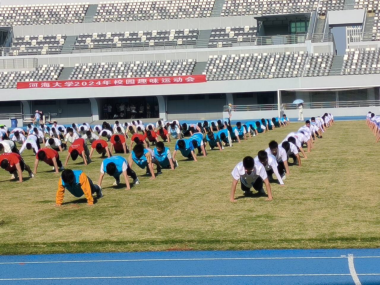 初夏,是一幅充满生机的画卷,也是大自然丰盈的诗篇。炽热的阳光下,清风轻拂面庞。人工智能与自动化学院开幕式的表演者们早早到场,给大家带来了耳目一新的俯卧撑表演,他们身体力行,在烈日下挥洒起自己的汗水,伴随着一声声呐喊,趣味运动会也正式开始!
