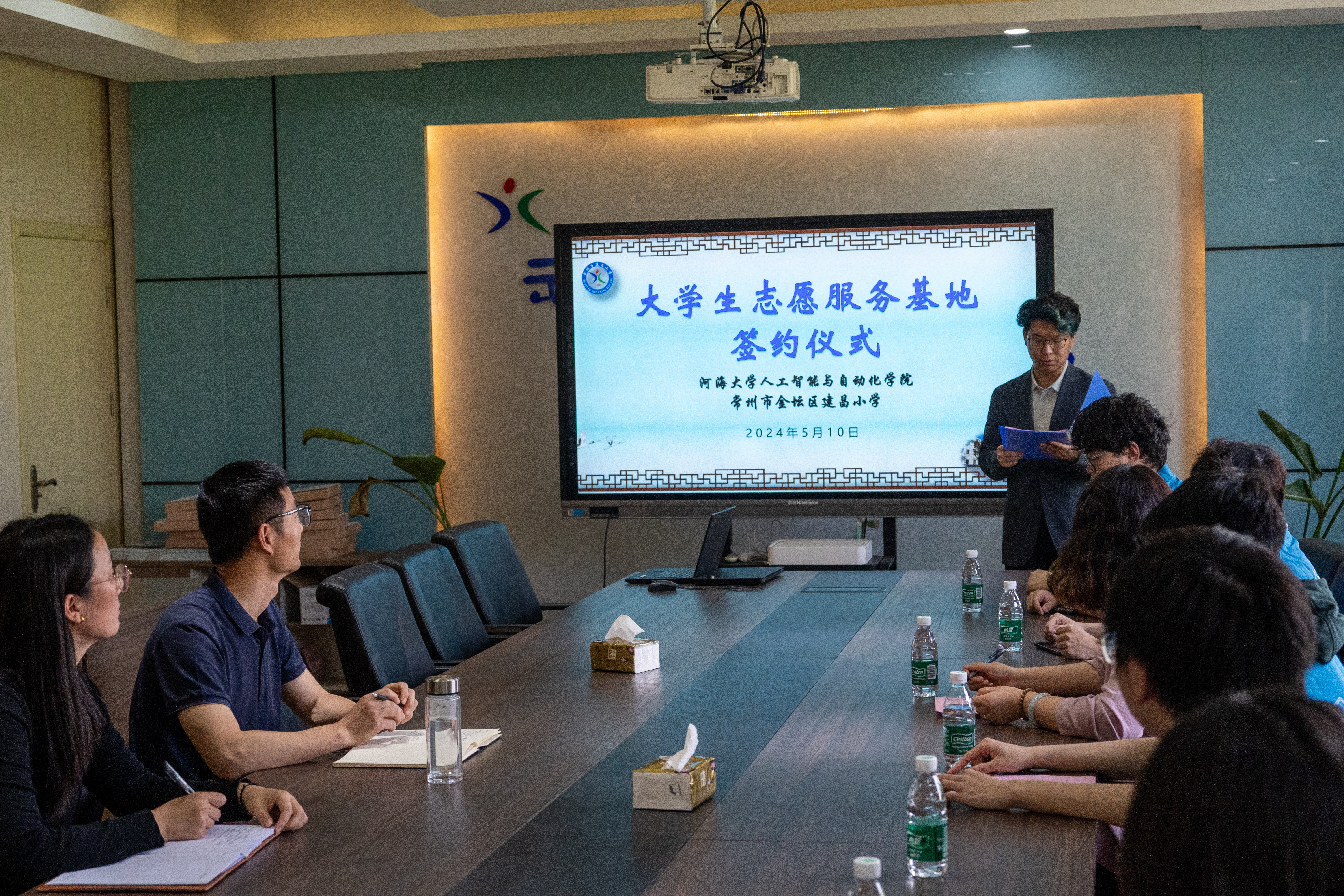 为贯彻落实习近平总书记关于青年工作的重要指示精神,加强青年学生社会责任感教育,强化社会实践和志愿服务的实践育人功能,2024年5月11日下午,人工智能与自动化学院贾婷婷老师与志愿者代表赴常州市金坛区建昌小学参加大学生志愿服务基地签约仪式。活动由人工智能与自动化学院团委志愿者部负责人王启元同学主持。