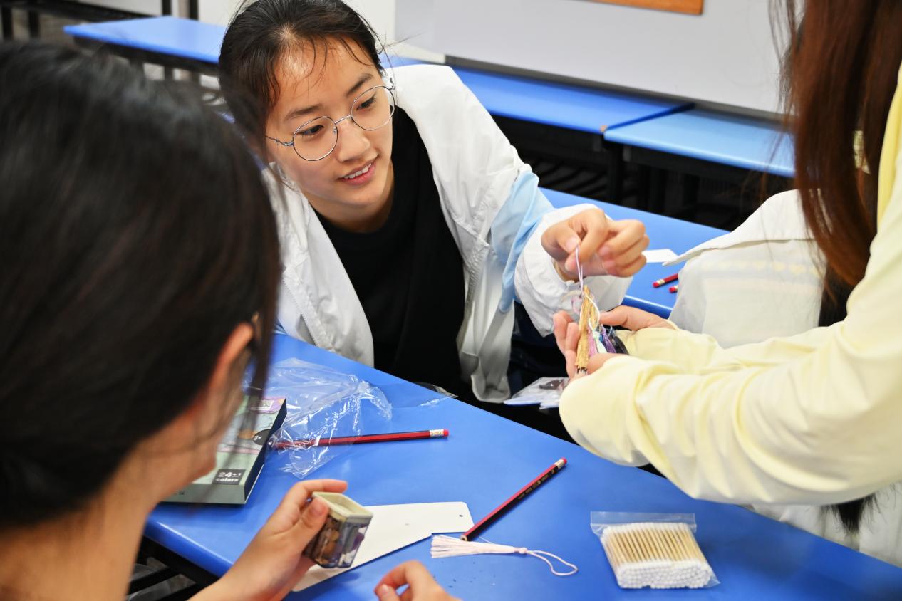 活动开始前,志愿者们准备好所有的物资,将教室简单布置,制造出轻松愉悦的氛围。活动在12:30正式开始,每人分到一盒画笔、书签和相关工具,四人一小组相互帮助。大家开动脑筋,激发创造力,纷纷开始在自己的书签上创造独属于自己的艺术品。在此过程中,来自传媒中心的同学用相机记录下同学们认真绘制书签的样子。活动结束后,每人都和自己的书签一同合影留作纪念。