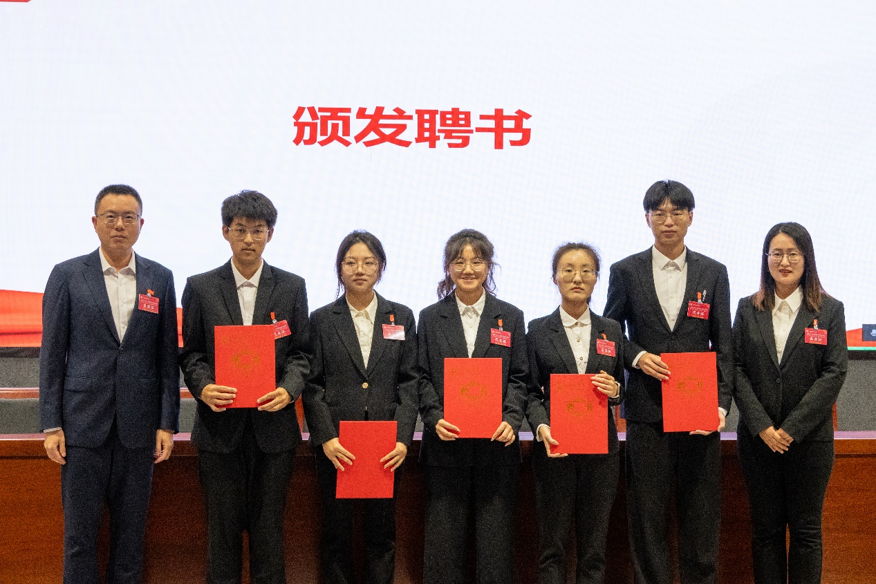 大会选举产生了人工智能与自动化学院第一届学生会、第一届研究生会主席团成员,学院党委副书记李晓东老师、学院团委书记贾婷婷老师为他们颁发聘书。