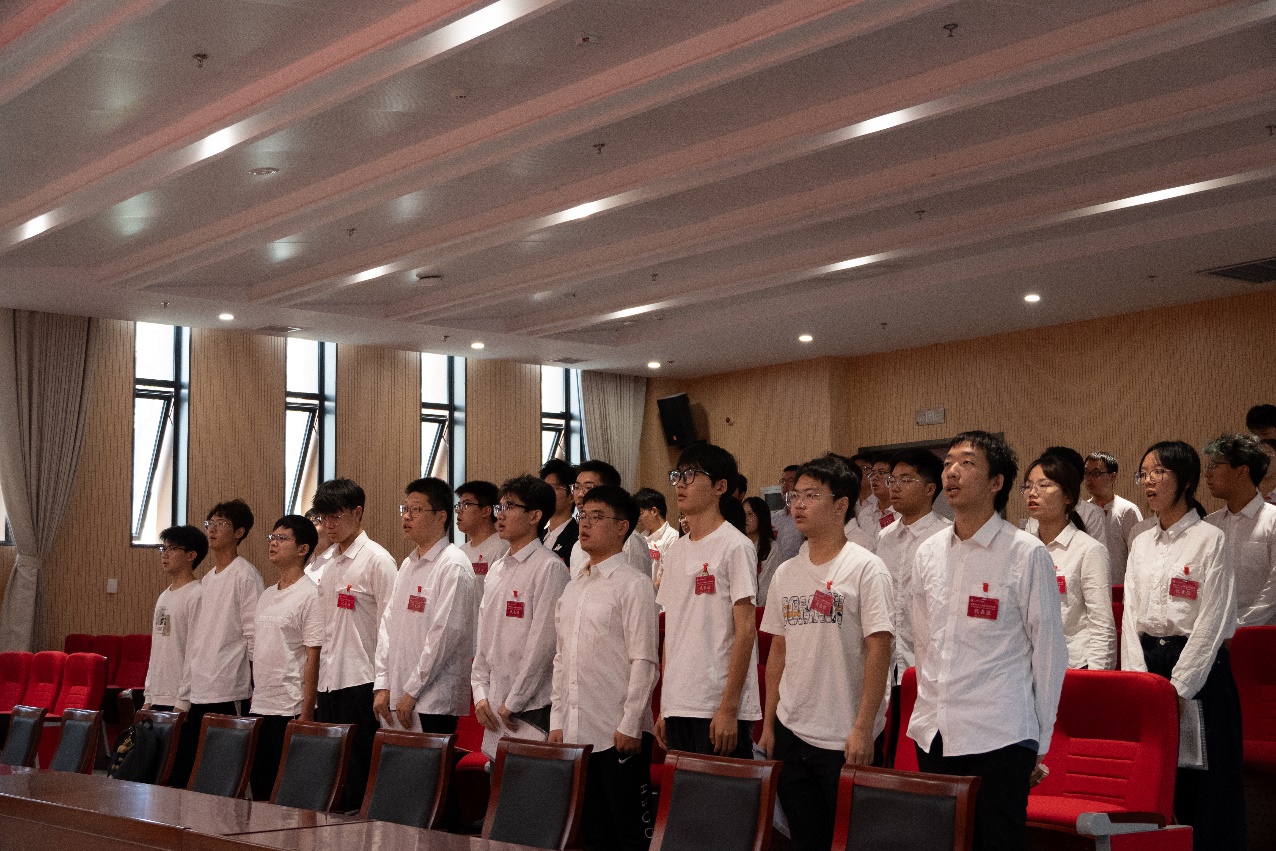 大会在雄壮而庄严的国歌声中隆重拉开序幕。校学生会主席团成员张玉麟同学、校研究生会主席团成员李嘉豪同学先后致辞,他们对人工智能与自动化学院学生会、研究生会过去的工作予以高度评价并就学院学生会、研究生会持续深化改革和推动从严治会等方面提出了宝贵意见。他们表示人工智能与自动化学院学生会、研究生会作为新成立的学生会、研究生会,在学院党委的坚强领导与学院团委、校学生会、校研究生会的精心指导下,始终坚持“全心全意服务同学”的宗旨, 聚焦广大同学核心需求,扎实开展了一系列富有成效的工作,不仅促进了学生群体之间的深度交流,精准解决了他们在学习与生活中遇到的实际问题,还为学生提供了展示才华与青春活力的平台,产生了积极的影响。今后,校学生会、研究生会也将与学院互学互鉴,积极应对新时期学生工作面临的挑战,奋力书写为中国式现代化挺膺担当的青春篇章。
