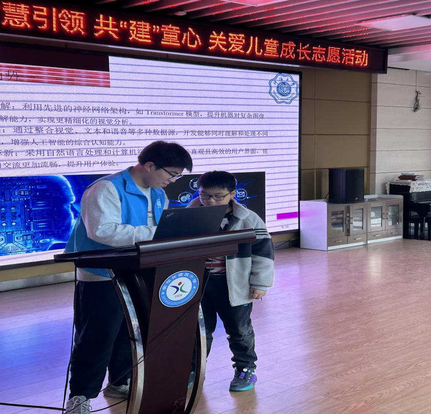 志愿者们采用生动有趣的方式,向同学们介绍了人工智能的基本原理及其应用。他们通过日常生活中的实例,如语音助手,引导学生了解AI的概念,并以“人脸识别系统”为例,解释AI如何通过大量数据进行学习和判断。这样的讲解使同学们对人工智能有了形象且立体的认识。
