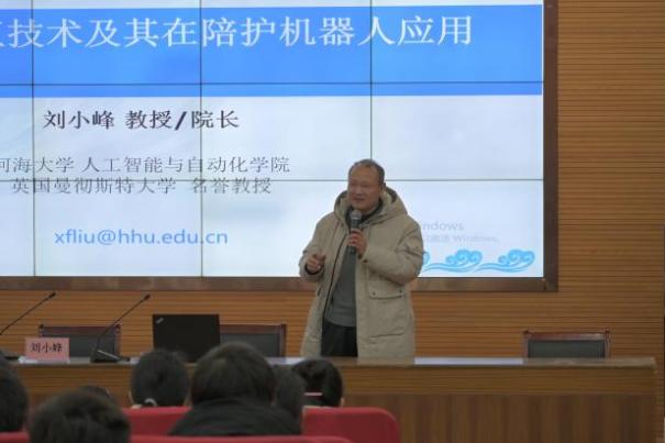 签约仪式后,刘小峰院长和夏岭副教授分别做了题为《具身情感交互技术及其在陪护机器人应用》和《光与视觉健康》的专题科普讲座。