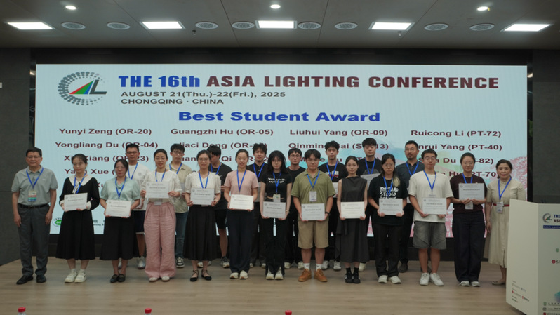 人工智能与自动化学院“人–机–环境融合智能”团队提交的论文《The Role of Panoramic Illuminance in Assessing the Illuminance Adequacy of Visual Elements》,在重庆举办的第十六届亚洲照明大会上荣获最佳学生论文奖(Best Student Paper Award)。该论文第一作者为2023级硕士生谷美泽,通讯作者为夏岭老师。