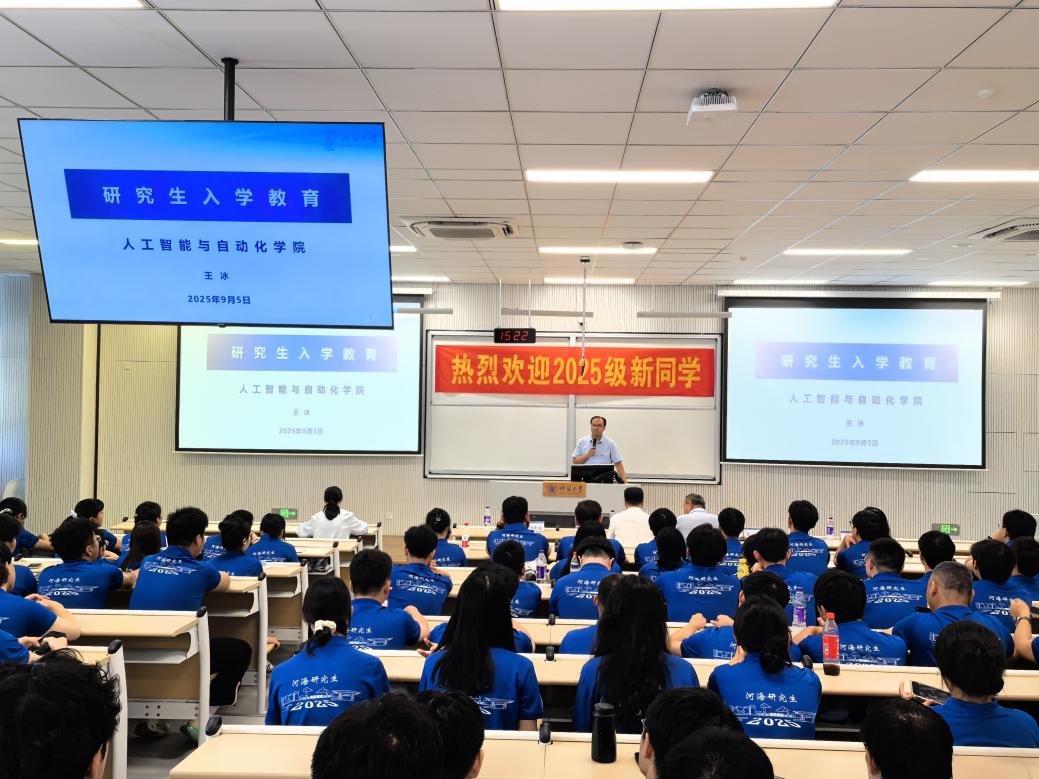 国歌嘹亮,校歌声扬。9月5日下午,开云电竞网常州校区C120教室内洋溢着庄严而热烈的氛围,人工智能与自动化学院2025级研究生开学典礼在此隆重举行。出席典礼的有学院党委书记董涌波、学院院长刘小峰教授、学院副院长王冰教授、学院研究生教学秘书牛春丽老师、研究生辅导员姚凯迪老师,学院党委副书记陈璐主持典礼。