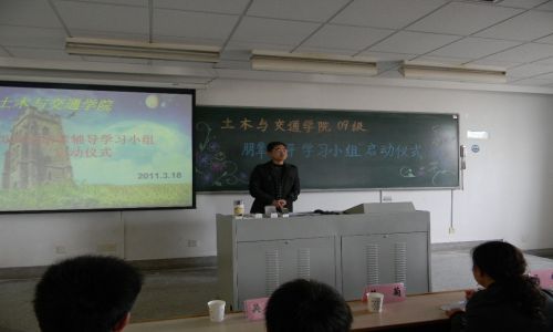 3月18日下午,土木与交通学院09级朋辈辅导“学习小组”启动仪式在江宁校区隆重举行。出席此次启动仪式的领导和老师有土木与交通学院党委副书记蒋菊,09级土木工程专业班导师老师代表马麟老师、王伟老师,09级辅导员张剑宇老师与10级辅导员吴昊老师。