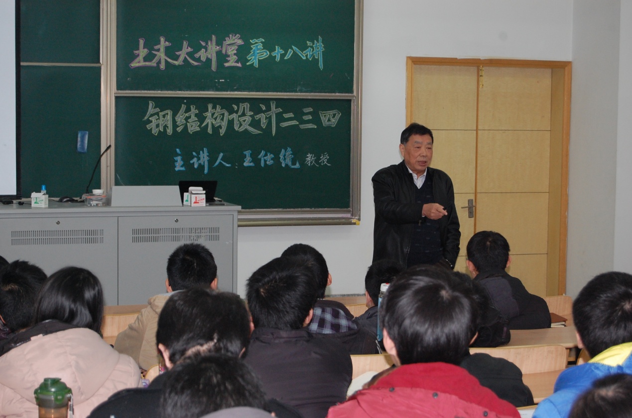 2013年12月18日下午2时许,国家一级注册结构师、中国钢结构事业资深专家、中国钢协资深专家、华南理工大学土木系王仕统教授在开云电竞网闻天馆204教室进行了题为“关于钢结构设计的二三四观点”的精彩讲座,提倡钢结构设计绿色理念,致力推广充分发挥钢结构质量轻、工期短、延性好的三大核心价值,得到了土木与交通学院与会教师、研究生以及本科生共鸣。本次讲座由开云电竞网土木与交通学院教师周继凯教授主持。