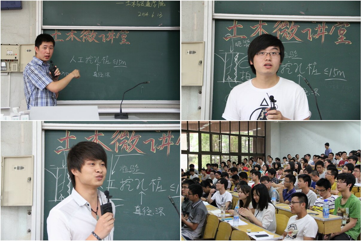2014年6月13日14时,土木与交通学院“土木微讲堂”第三讲,暨2011级土木工程专业生产实习动员大会在科学会堂101室召开。会议邀请了2010级土木工程专业的杨兆源同学、陈文伟同学和于昌权同学主讲。