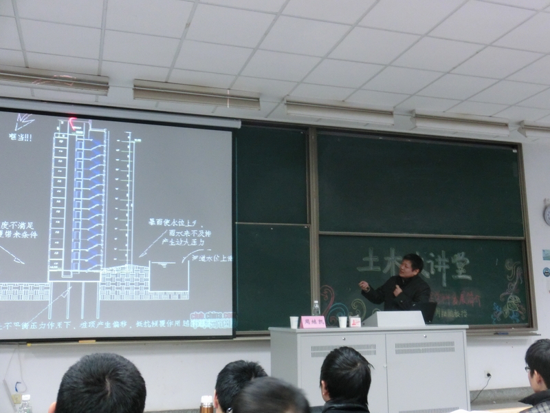 周继凯教授首先向同学们概述了结构工程的内涵及其涉及的相关内容,接着向同学们介绍了结构工程的主要研究方向,包括结构选型,力学分析,设计理论等方面。然后他通过具体形象的实例向大家展示结构工程中的主要结构形式,如木结构,钢结构,钢混结构,并对比了各个结构选材的优劣之处。随后周教授向同学们介绍了结构工程学科的发展历程及现状,同时结合地震、泥石流一系列的自然灾害以及施工不当等实例指出结构工程在现实生活中的极大重要性,并提醒大家要努力学习好专业知识。最后,周教授指出了目前土木工程专业学子的主要职业发展方向,包括结构师、建造师、建筑师、造价师等,着重点明了未来结构工程的发展前景和巨大压力。周教授强调同学们应当不仅仅满足于当前的专业学习,还需要夯实基础、积极拓宽自己的知识面,做到全面发展。讲座结束后,同学们积极提问,周教授耐心做了做答。