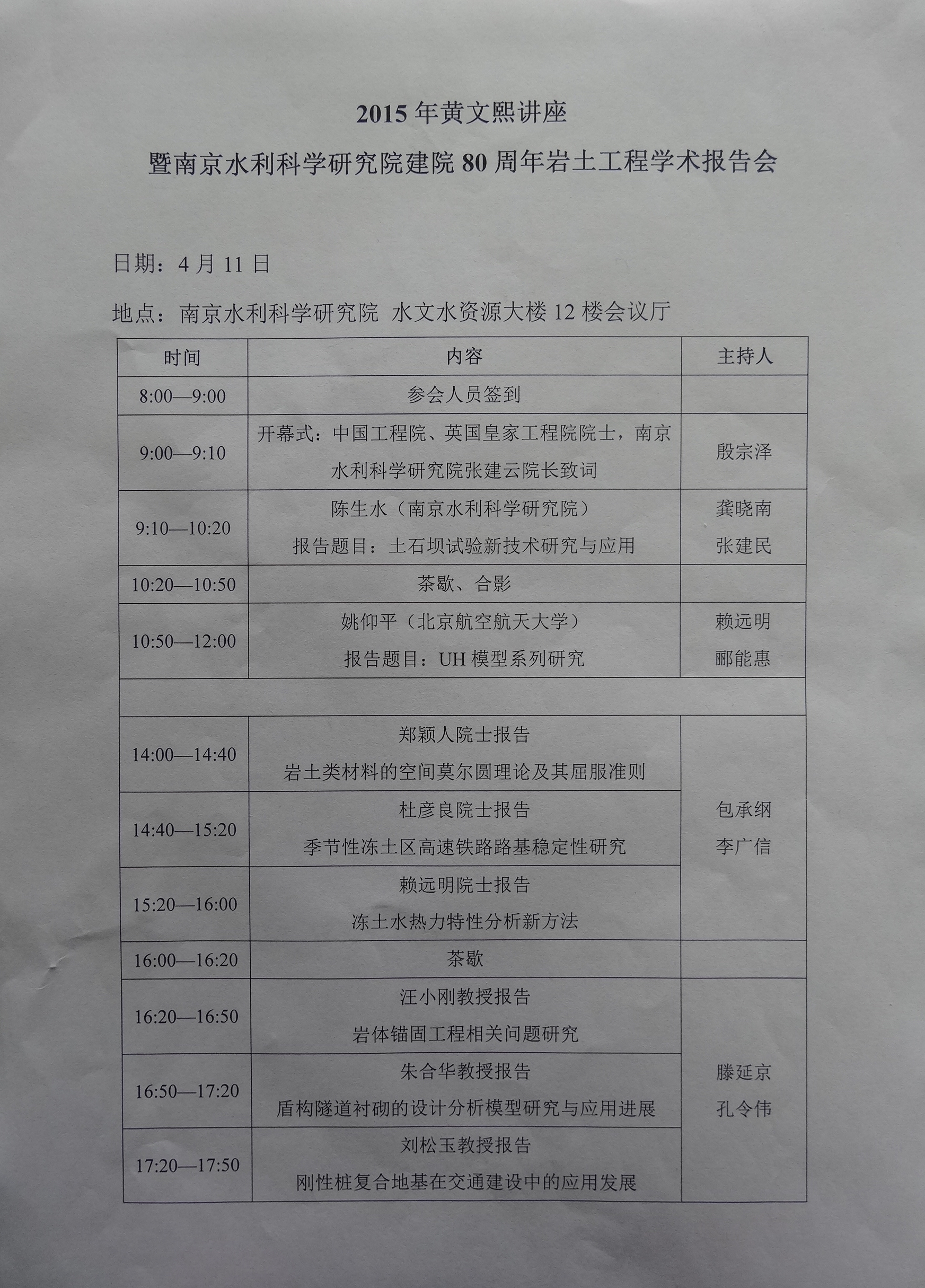2015 年度黄文熙讲座学术报告会通知