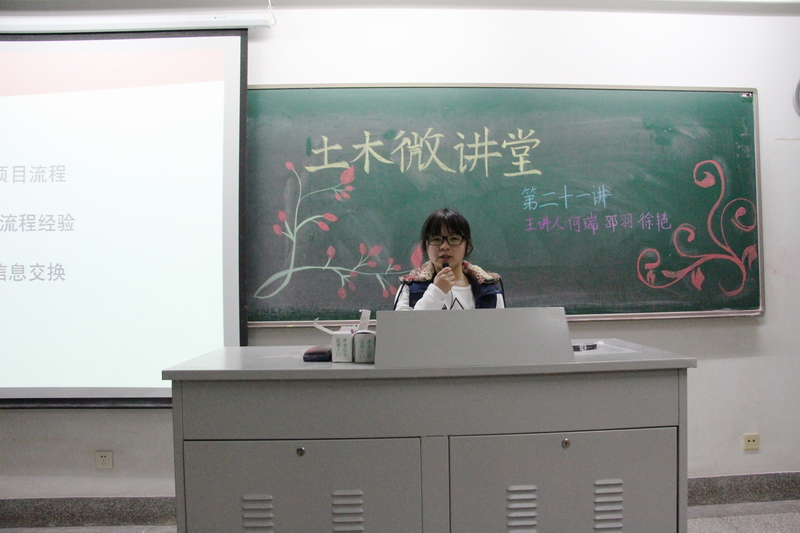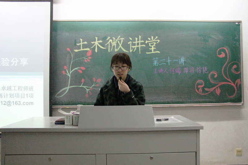2016年3月9日,由土木与交通学院主办,土木与交通学院本科生科协承办的土木微讲堂第二十一讲——“创新创业训练计划经验分享”在江宁校区致用楼223成功举办。本次微讲堂的主讲人为2012级土木工程专业卓越班邵羽同学、大禹班何瑞同学以及2013级交通工程徐艳同学。邵羽同学主持国家级创训项目1项,相关成果发表SCI论文2篇,申请发明专利2项。何瑞同学主持2015年国家级创训项目1项,相关成果授权专利2项,申请专利1项。徐艳同学参加国家级创训项目1项,相关成果申请专利2项,投稿论文1篇。土木院2014级的部分同学参加了本次微讲堂。