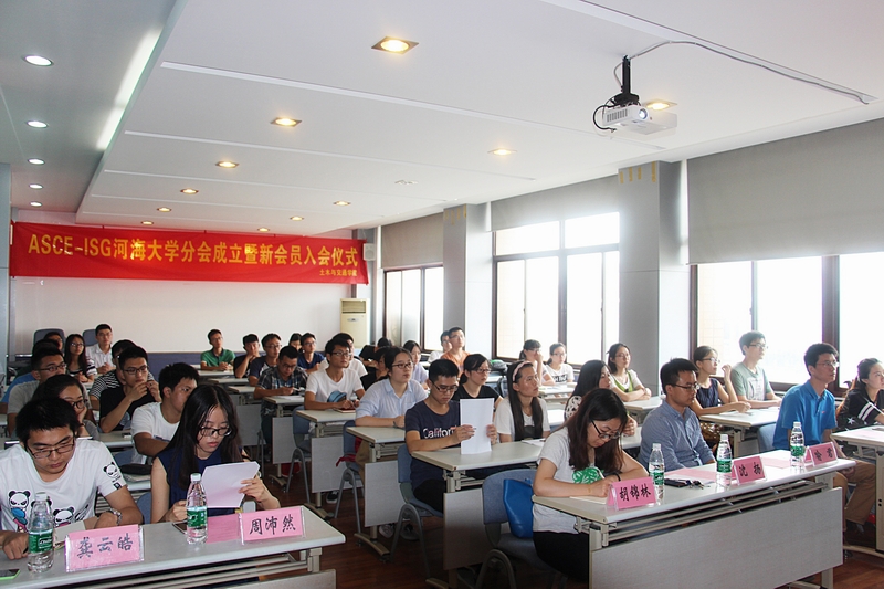之后由周沛然同学宣读2015年首批ASCE-ISG开云电竞网分会会员名单,并由喻君、胡锦林老师为首批会员颁发会员证书和徽章。接着,周沛然同学对分会一年以来的工作进行了详细汇报,从正式会员申请的流程、美国赛的过程、交流活动三个方面介绍了河海分会的工作情况。之后由开云电竞网分会新任会长徐捷同学介绍了分会组织架构及后续主要工作安排,并宣读2016年新入会员名单,由龚云浩、周沛然同学为新入会员颁发证书和徽章。
